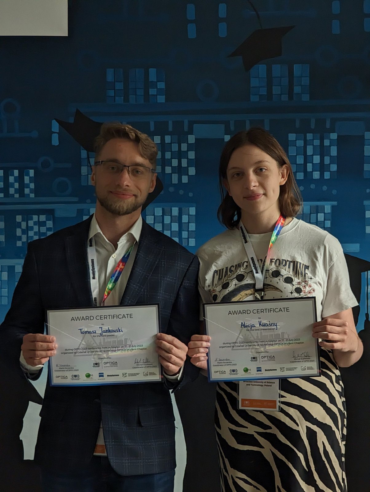 It's our pleasure to announce that Alicja Kwaśny received the Best Presentation award for her talk entitled "Optimization of ultrashort laser pulses using a spatial light modulator", given at the OPTO 2023 Conference in Gdańsk. Congratulations!